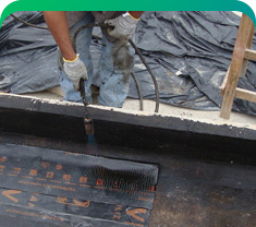 Laje, caixa d'água, reservatórios com manta asfáltica ou por meio de cristalização.